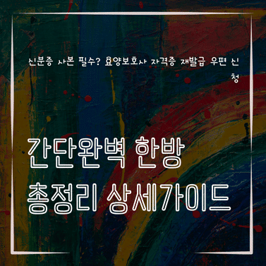 요양보호사 자격증을 소지하고 계신 여러분, 혹시 자격증을 잃어버리셨거나 훼손되어서 새 자격증이 필요하게 되셨나요? 또는 결혼이나 다른 이유로 이름이나 주민등록번호가 바뀌어서 자격증의 기재사항 변경이 필요하신가요? 이런 … Read more